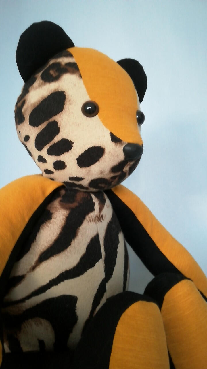 Liebgewonnene textile Erinnerungen werden zu besonderen Bären. Aus Kleidung und Stoffen werden individuelle bleibende Begleiter.Schicken Sie mir Ihre Stoffe oder Kleidungsstücke und erhalten Sie ein einzigartiges Unikat, das erinnert, tröstet und bleibt – kein Massenprodukt, sondern einen handgefertigten Erinnerungsbär / Memory Bear.Der sitzende Bär ist ca. 34 cm hoch und 24 cm tief sowie ca. 34 cm breit (Bauch ca. 18cm breit).